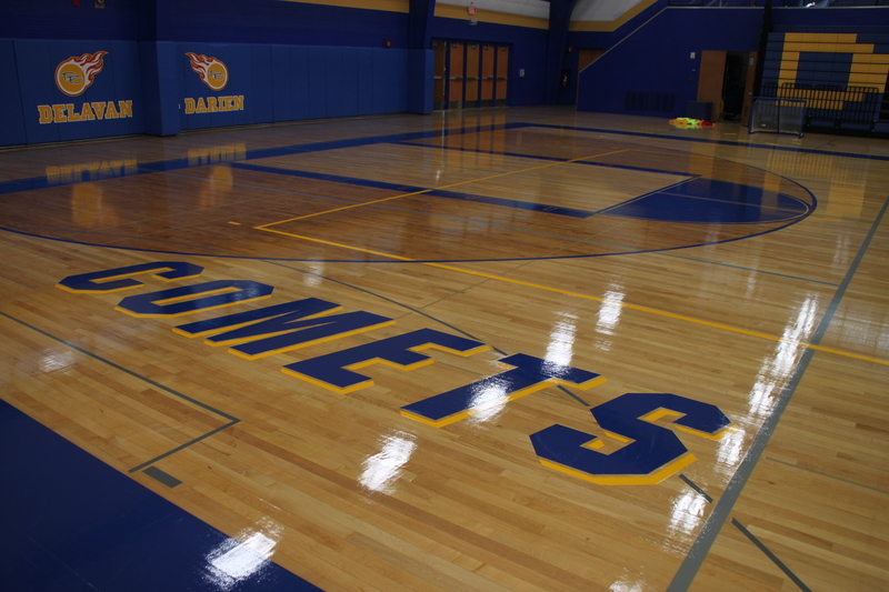 Over the summer the DDHS Gym received significant upgrades. First the roof which has been leaking for many years was completely replaced. Next the DDSD maintenance department repainted the entire gym and finally, the gym floor was completely sanded down to the bare wood surface and repainted. It look amazing and is ready to host many sporting events this school year.